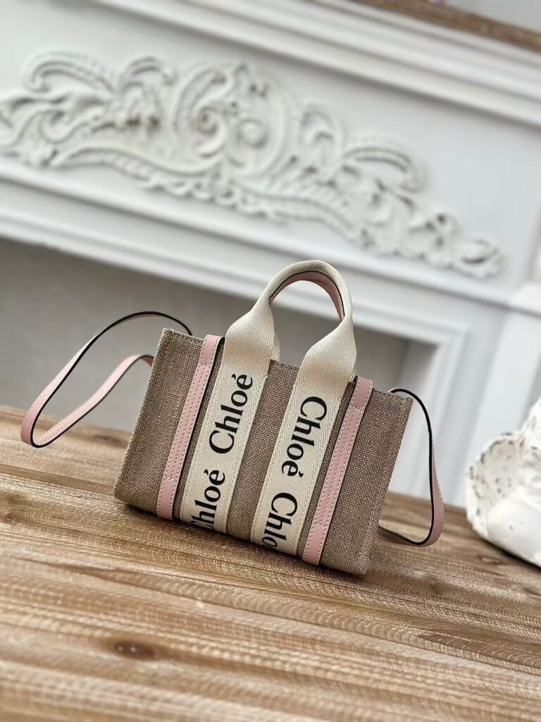 Chloe Woody linen pure cotton canvas and glossy small dough, pink casual bag Mediu Size: 37*26*12cm
