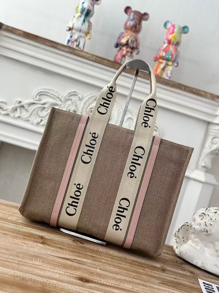Chloe Woody linen pure cotton canvas and glossy small dough, pink casual bag Larg Size: 45*33*13cm