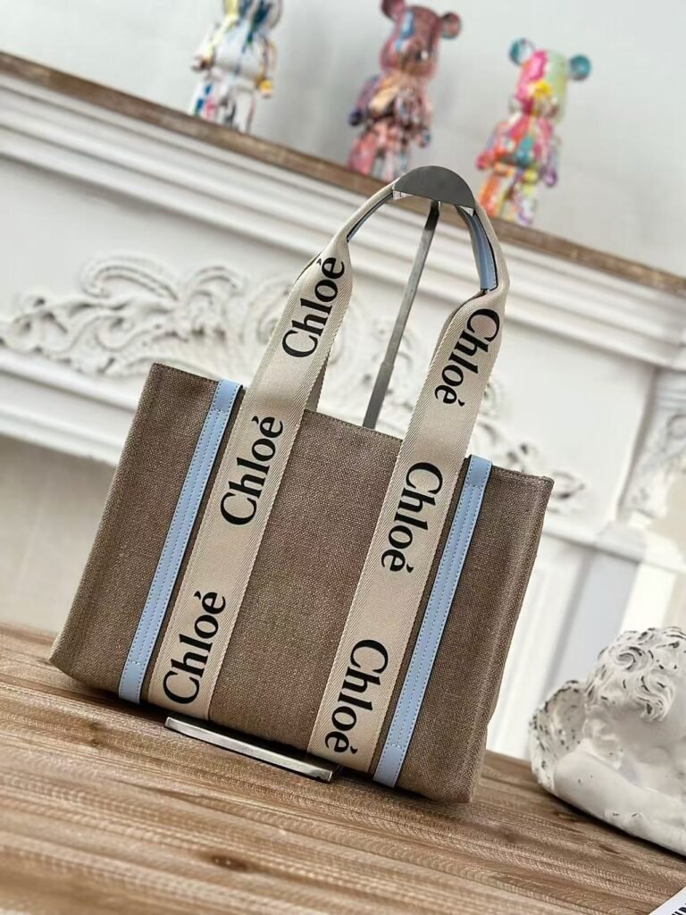 Chloe Woody linen pure cotton canvas and glossy small dough, blue casual bag Mediu Size: 37*26*12cm