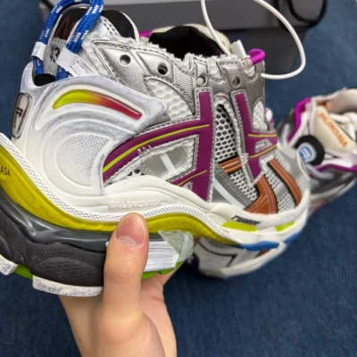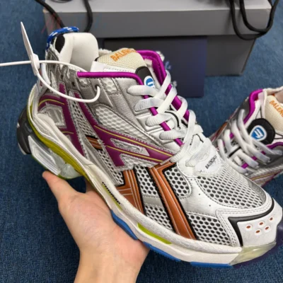 B*lenciaga Runner Leather Free Grey Light Purple Neon Yellow White