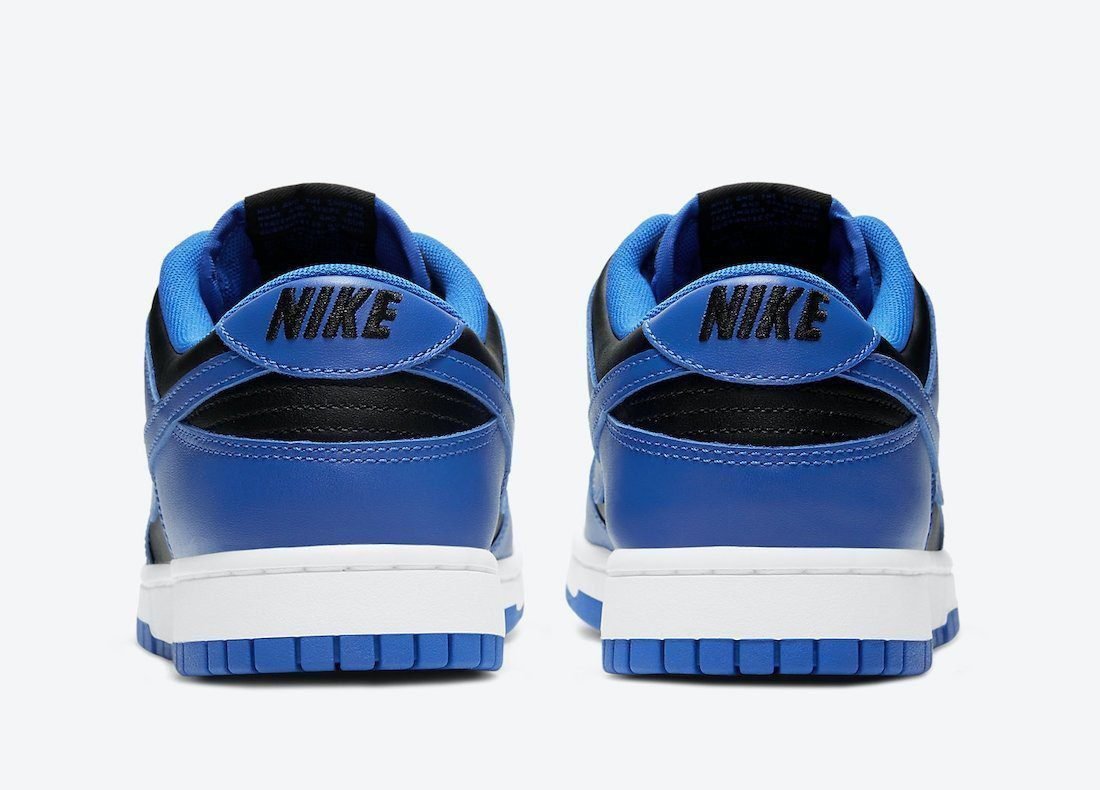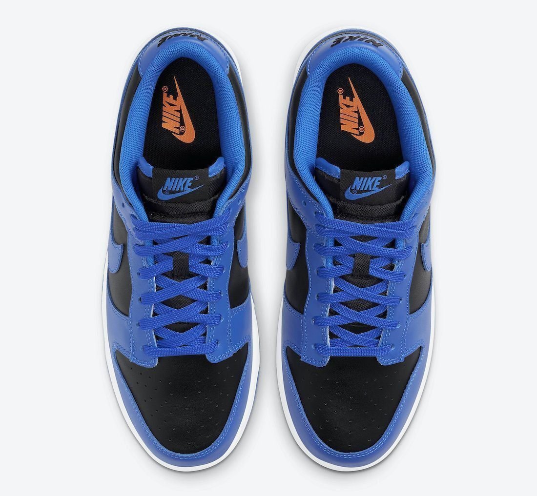 The Nike Dunk Low ‘Hyper Cobalt’ could be mistaken for an original 1985 colorway, featuring OG-style two-tone color blocking and a crisp white midsole. The leather upper combines a black base with contrasting blue overlays and a matching signature Swoosh. Traditional branding hits take the form of a woven Nike tongue tag, an embroidered Nike wordmark on the heel tab, and a Nike logo stamped on the sockliner in an unexpected pop of orange coloring.